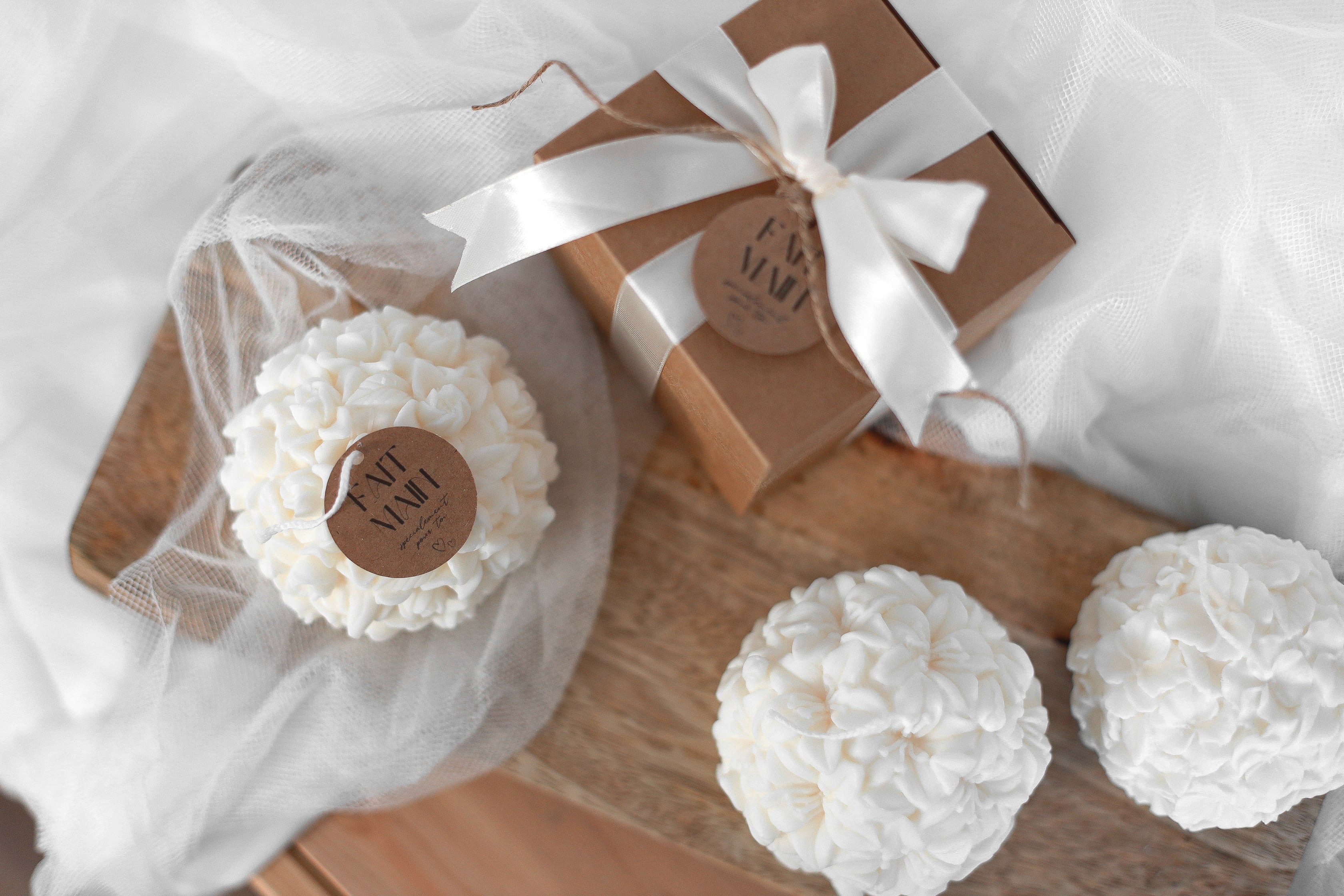 Bougie décorative « ensemble » ornée de fleurs séchées idée cadeau noces de cire