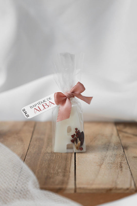 Bougie décorative « arc-en-fleurs » - Initiales en bois